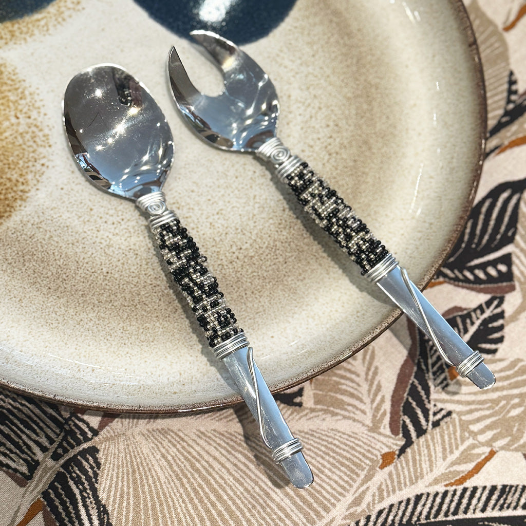 Afrochic - Black Hand-beaded Salad Servers